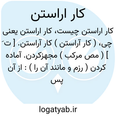 ( کار آراستن ) کار آراستن. [ ت َ ] ( مص مرکب ) مجهزکردن. آماده کردن ( رزم و مانند آن را ):