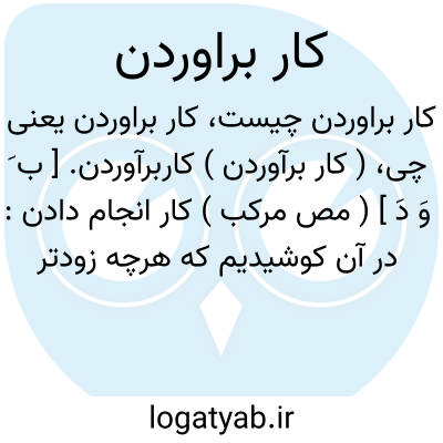 ( کار برآوردن ) کاربرآوردن. [ ب َ وَ دَ ] ( مص مرکب ) کار انجام دادن: در آن کوشیدیم که هرچه زودتر کار برآوردیم و دستوری خواستیم. ( مجمل التواریخ و القصص ).