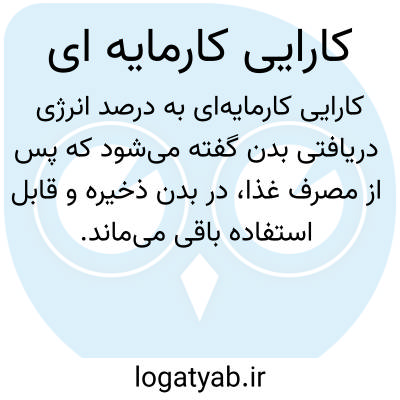 کارایی کارمایه‌ای به درصد انرژی دریافتی بدن گفته می‌شود که پس از مصرف غذا، در بدن ذخیره و قابل استفاده باقی می‌ماند. این شاخص نشان می‌دهد چه مقدار از انرژی موجود در غذاها به عنوان انرژی قابل بهره‌برداری برای رشد، فعالیت و نگهداری بدن باقی می‌ماند.
