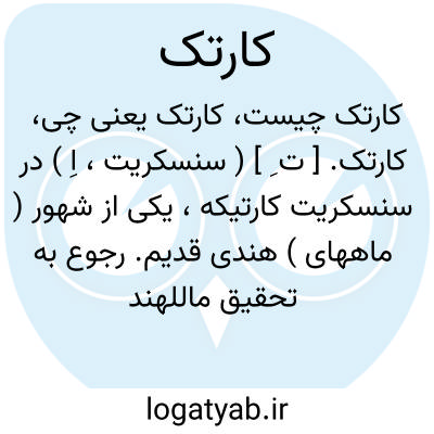 کارتک. [ ت ِ ] ( سنسکریت، اِ ) در سنسکریت کارتیکه، یکی از شهور ( ماههای ) هندی قدیم. رجوع به تحقیق ماللهند بیرونی ص 106، 107، 181، 201، 206، 250، 285، 287، 289، 291، 294 شود.