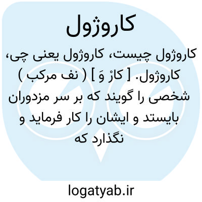 کاروژول. [ کارْ وَ ] ( نف مرکب ) شخصی را گویند که بر سر مزدوران بایستد و ایشان را کار فرماید و نگذارد که ایشان در کار تعلل کنند. ( برهان ). کارفرما و سرکار و عمله و بنا. ( انجمن آرا ) ( آنندراج ). مطلق کارفرما و آنکه بر سر فعله و بنّاو مزدور باشد و به آنها کار فرماید و سرکار و مباشرو گماشته. ( ناظم الاطباء ). در لسان العجم تألیف شعوری بمعنی «کارافژول » آمده است. ( شعوری ج 2 ص 248 ب ).
