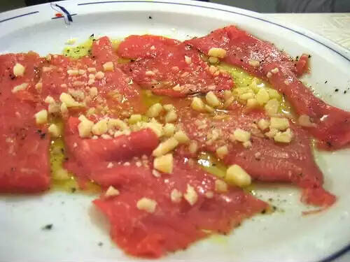 کارپاچیو ( به ایتالیایی: Carpaccio ) نام غذایی ایتالیایی است که از قطعات گوشت خام ( مانند گوشت گاو، گوشت گوساله و گوشت گوزن و آهو ) یا ماهی خام ( مانند ماهی آزاد یا ماهی تن ) که به نازکی برش خورده یا کوبیده شده تهیه می شود و به عنوان پیش غذا یا اشتهاآور خورده می شود.