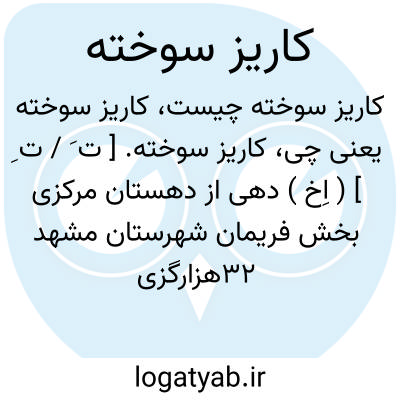 کاریز سوخته. [ ت َ / ت ِ ] ( اِخ ) دهی از دهستان مرکزی بخش فریمان شهرستان مشهد 32هزارگزی جنوب باختری فریمان.دامنه و معتدل و سکنه آن 288 تن است قنات دارد. محصول آن غلات و بنشن و تریاک و شغل اهالی مالداری است.راه مالرو دارد. ( از فرهنگ جغرافیایی ایران ج 9 ).