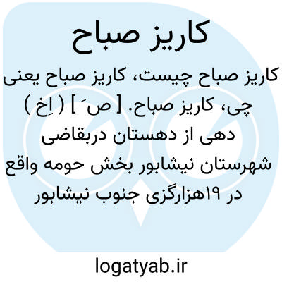 کاریز صباح. [ ص َ ] ( اِخ ) دهی از دهستان دربقاضی شهرستان نیشابور بخش حومه واقع در 19هزارگزی جنوب نیشابور جلگه و معتدل و سکنه آن 400 تن است. قنات دارد. محصول آن غلات و تریاک و شغل اهالی زراعت است.راه مالرو دارد. ( از فرهنگ جغرافیایی ایران ج 9 ).