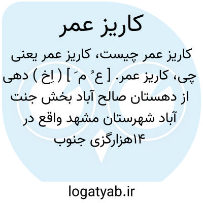 کاریز عمر. [ ع ُ م َ ] ( اِخ ) دهی از دهستان صالح آباد بخش جنت آباد شهرستان مشهد واقع در 14هزارگزی جنوب باختری صالح آباد سرراه مالرو عمومی صالح آباد به معدن چشمه گل، کوهستانی و معتدل و سکنه آن 311 تن است. قنات دارد، محصول آن غلات و ذرت و پنبه و تریاک و شغل اهالی زراعت است.راه مالرو دارد. ( از فرهنگ جغرافیایی ایران ج 9 ).