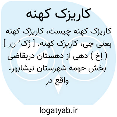 کاریزک کهنه. [ زَک ُ ن ِ ] ( اِخ ) دهی از دهستان دربقاضی بخش حومه شهرستان نیشابور، واقع در 12هزارگزی جنوب نیشابور. جلگه و معتدل و سکنه آن 267 تن است. قنات دارد. محصول آن غلات و تریاک و شغل اهالی زراعت و مالداری است. راه اتومبیل رو دارد. ( از فرهنگ جغرافیایی ایران ج 9 ).
