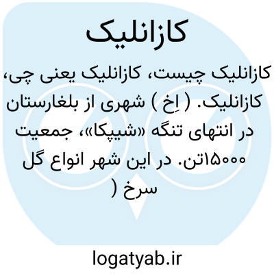 کازانلیک. ( اِخ ) شهری از بلغارستان در انتهای تنگه «شیپکا»، جمعیت 15000تن. در این شهر انواع گل سرخ ( رُز ) پرورش میدهند.