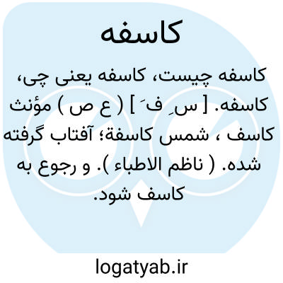 کاسفه. [ س ِ ف َ ] ( ع ص ) مؤنث کاسف، شمس کاسفة؛ آفتاب گرفته شده. ( ناظم الاطباء ). و رجوع به کاسف شود.