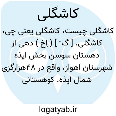 کاشگلی. [ گ َ ] ( اِخ ) دهی از دهستان سوسن بخش ایذه شهرستان اهواز، واقع در 48هزارگزی شمال ایذه. کوهستانی معتدل، و دارای 55تن سکنه است. آب از چشمه دارد. محصول آن غلات و شغل اهالی زراعت است.راه مالرو دارد. ( از فرهنگ جغرافیایی ایران ج 6 ).