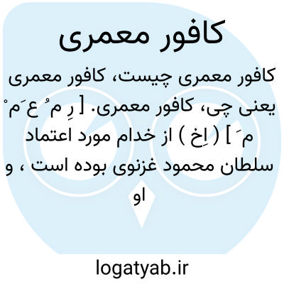 کافور معمری. [ رِ م ُ ع َم ْ م َ ] ( اِخ ) از خدام مورد اعتماد سلطان محمود غزنوی بوده است، و او را همراه عبدالجبار برای آوردن دختر امیر گرگان از نشابور به آنجا فرستادند: و دانشمند بوالحسن قطان از فحول شاگردان قاضی امام صاعدباعبدالجبار نامزد شد و کافور معمری خادم معتمد محمودی و مهد راست کردند. ( تاریخ بیهقی چ ادیب ص 384 ).