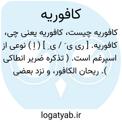 کافوریه. [ ری ی َ / ی ِ ] ( اِ ) نوعی از اسپرغم است. ( تذکره ضریر انطاکی ). ریحان الکافور، و نزد بعضی کافوریه اسم اقحوان است. رجوع به کافوری شود.