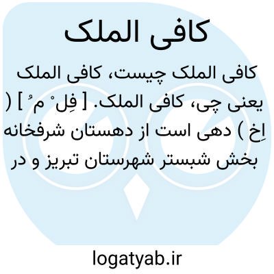 کافی الملک. [ فِل ْ م ُ ] ( اِخ ) دهی است از دهستان شرفخانه بخش شبستر شهرستان تبریز و در 12هزارگزی جنوب باختری شبستر واقع و حد دیگرش 5هزارگزی شوسه صوفیان سلماس و 3هزارگزی خطآهن جلفاست. ناحیه ای است جلگه، با آب و هوای معتدل و تعداد سکنه آن 1608 تن است. آبش از چشمه تأمین میشود محصولش غلات و حبوبات و شغل اهالیش زراعت و گله داری و راههایش ارابه رو است. ( از فرهنگ جغرافیائی ایران ج 4 ).