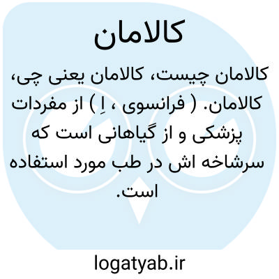 کالامان. ( فرانسوی، اِ ) از مفردات پزشکی و از گیاهانی است که سرشاخه اش در طب مورد استفاده است. ( کارآموزی داروسازی دکتر جنیدی ص 215 ). فوتنج نهری. حبق التمساح. حبق الماء. کلمنتون. نعناع بری. قلمنت. قلمنتون.