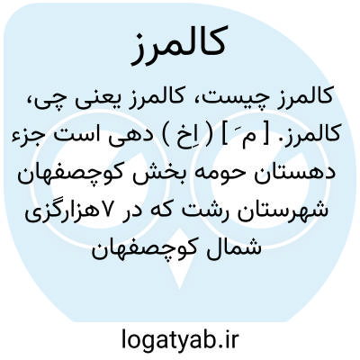 کالمرز. [ م َ ] ( اِخ ) دهی است جزء دهستان حومه بخش کوچصفهان شهرستان رشت که در 7هزارگزی شمال کوچصفهان سر راه مالرو عمومی کوچصفهان به خشکبیجار واقع و جلگه ای و معتدل و مرطوب است 450 تن سکنه دارد و از نورود، سفیدرود مشروب میشود. محصولات آن برنج، صیفی و شغل اهالی زراعت و راههای آن مالرو است. ( از فرهنگ جغرافیائی ایران ج 2 ).