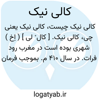 کالی نیک. [ کال ْ لی ] ( اِخ ) شهری بوده است در مغرب رود فرات. در سال 410 م. بموجب فرمان قیصران روم هونوریوس و تئودوریوس صغیر از جمله بلادی بود که مبادله تجارتی با ایران در آنجا نیز جایز بود:...چنین معین شد که در ناحیه شرق در جانب دجله شهر نصیبین و در غرب در سمت فرات شهر کالی نیک، در شمال در ناحیه ارمنستان در شهر ارتکزاتا دو شهر نصیبین و سنجار پیش از آنکه خالی السکنه شد، بموجب صلحنامه 363 برومیان واگذار گردید. ( ایران در زمان ساسانیان ترجمه رشید یاسمی چ 2 ص 148 ).