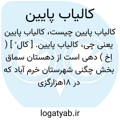 کالیاب پایین. [ کال ْ ] ( اِخ ) دهی است از دهستان سماق بخش چگنی شهرستان خرم آباد که در 18هزارگزی جنوب باختری سراب دوره و 13هزارگزی جنوب اتومبیل رو خرم آباد به کوهدشت واقع است. تپه ای و ماهور و معتدل است، و 900 تن سکنه دارد آبش از رودخانه کشکان تأمین میشود. محصولات آن غلات و لبنیات است.شغل اهالی زراعت و گله داری، صنایع دستی زنان سیاه چادر بافی و راههای آن مالرو است. بقعه ای بنام امام زاده حیات الغیب دارد. اهالی آن از طایفه شاه کرمی بوده و چادرنشین هستند. ( از فرهنگ جغرافیائی ایران ج 6 ).
