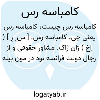 کامباسه رس. [ س ِ رِ ] ( اِخ ) ژان ژاک. مشاور حقوقی و از رجال دولت فرانسه بود در مون پیله بدنیا آمد ( 1824-1753 م. ). صدر اعظم امپراطور بود. در تحریر قانون مدنی فرانسه شرکت داشت.