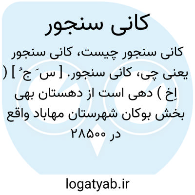 کانی سنجور. [ س َ ج ُ ] ( اِخ ) دهی است از دهستان بهی بخش بوکان شهرستان مهاباد واقع در 28500 گزی شمال خاوری بوکان و 26هزارگزی خاوری شوسه بوکان به میاندوآب. ناحیه ای است کوهستانی معتدل سالم و دارای 81 تن سکنه است. آب آنجا از چشمه مشروب میشود. محصولاتش غلات، حبوب، لبنیات است اهالی به کشاورزی و گله داری گذران میکنند. از صنایع دستی آنان جاجیم بافی است. ( از فرهنگ جغرافیائی ایران ج 4 ).