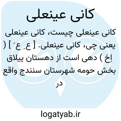 کانی عینعلی. [ ع ِ ع َ ] ( اِخ ) دهی است از دهستان ییلاق بخش حومه شهرستان سنندج واقع در 25هزارگزی خاور سنندج و 8هزارگزی شمال شوسه سنندج همدان. ناحیه ای است واقع در جلگه، سردسیر و دارای 200 تن سکنه. از چشمه مشروب میشود و محصولاتش غلات است و اهالی به کشاورزی و گله داری گذران میکنند. از صنایع دستی زنان قالیچه و جاجیم و گلیم بافی است. ( از فرهنگ جغرافیائی ایران ج 5 ).