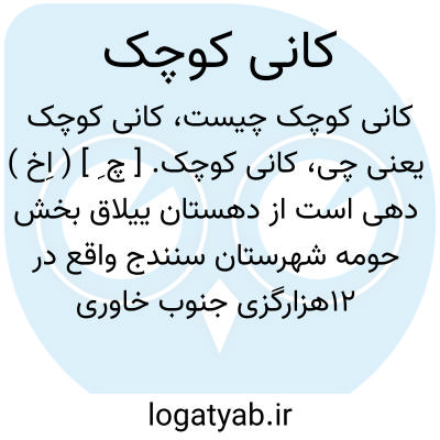 کانی کوچک. [ چ ِ ] ( اِخ ) دهی است از دهستان ییلاق بخش حومه شهرستان سنندج واقع در 12هزارگزی جنوب خاوری سنندج و 8هزارگزی خاور شوسه سنندج به کرمانشاهان. ناحیه ای است کوهستانی سردسیر و دارای 280 تن سکنه. از چشمه مشروب میشود محصولاتش غلات، انواع میوه و لبنیات است. و اهالی به کشاورزی و گله داری گذران میکنند. از صنایع دستی زنان قالیچه و جاجیم و گلیم بافی است. ( از فرهنگ جغرافیائی ایران ج 5 ).