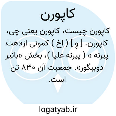کاپورن. [ وِ ] ( اِخ ) کمونی از«هت پیرنه » ( پیرنه علیا )، بخش «بانیر دوبیگور». جمعیت آن 830 تن است. راه آهن و آبهای گرم معدنی دارد.