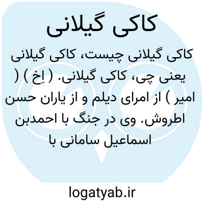 کاکی گیلانی. ( اِخ ) ( امیر ) از امرای دیلم و از یاران حسن اطروش. وی در جنگ با احمدبن اسماعیل سامانی با حسن اطروش بقتل رسیده است. ( احوال و اشعار رودکی تألیف نفیسی ج 1 ص 381 ).
