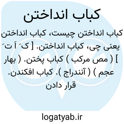 کباب انداختن. [ ک َ اَ ت َ ] ( مص مرکب ) کباب پختن. ( بهار عجم ) ( آنندراج ). کباب افکندن. قرار دادن گوشت به قطعات کرده بر آتش بقصد برشته و بریان شدن: