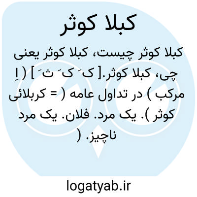 کبلا کوثر.[ ک َ ک َ ث َ ] ( اِ مرکب ) در تداول عامه ( = کربلائی کوثر ). یک مرد. فلان. یک مرد ناچیز. ( یادداشت مؤلف ).
