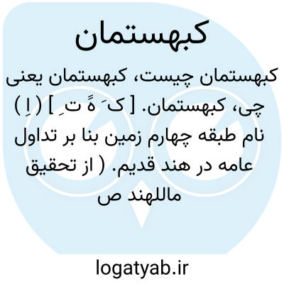 لغت نامه دهخدا کبهستمان. [ ک َ هََ ت ِ ] ( اِ ) نام طبقه چهارم زمین بنا بر تداول عامه در هند قدیم. ( از تحقیق ماللهند ص 113 ).