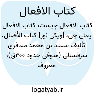 [ویکی فقه] کتاب الافعال (کتاب). «کتاب الأفعال»، تألیف سعید بن محمد معافری سرقسطی (متوفی حدود ۴۰۰ ق)، معروف به ابن حداد،از جمله آثار با موضوع ادبیات عربی است.