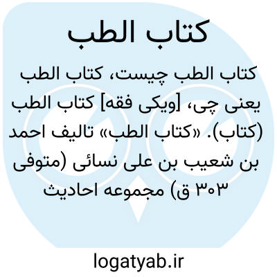 [ویکی فقه] کتاب الطب (کتاب). «کتاب الطب» تالیف احمد بن شعیب بن علی نسائی (متوفی ۳۰۳ ق) مجموعه احادیث طبی ای است که مؤلف در « السنن الکبری » نگاشته است و این مجموعه به همت سامی التونی به صورت کتابی جداگانه منتشر شده است.