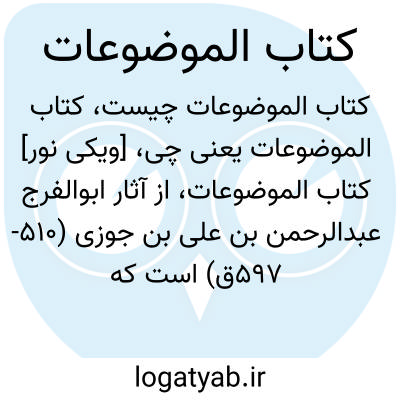 [ویکی نور] کتاب الموضوعات، از آثار ابوالفرج عبدالرحمن بن علی بن جوزی (510- 597ق) است که یکی از نقش آفرینان مهمّ در تاریخ اندیشه اسلامی محسوب می شود.