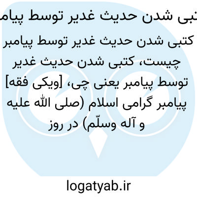 [ویکی فقه] پیامبر گرامی اسلام (صلی الله علیه و آله وسلّم) در روز غدیرخم طبق دستور خداوند، امیرالمؤمنین (علیه السّلام) را به خلافت بعد از خود معرفی فرمودند. اما پیامبر جدای از اعلان رسمی ولایت حضرت علی (علیه السّلام) در غدیر و...، اقدام به ثبت کَتبی آن هم نموده و در کتب حدیثی و تاریخی به ثبت رسیده است.