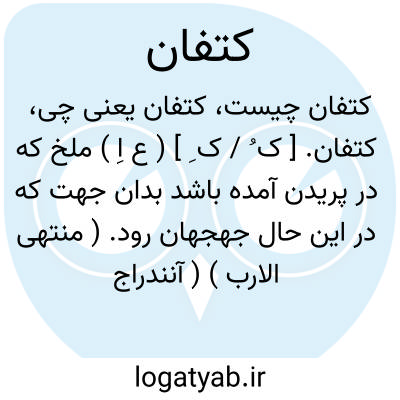 کتفان. [ ک ُ / ک ِ ] ( ع اِ ) ملخ که در پریدن آمده باشد بدان جهت که در این حال جهجهان رود. ( منتهی الارب ) ( آنندراج ) ( ناظم الاطباء ). یقال هی الجراد بعد الغوغاء اولها السروة ثم الدبا ثم الغوغاء ثم الکتفان. ( منتهی الارب ) ( از اقرب الموارد ).