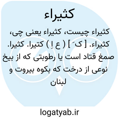 کثیراء. [ ک َ ] ( ع اِ ) کتیرا. کثیرا. صمغ قتاد است یا رطوبتی که از بیخ نوعی از درخت که بکوه بیروت و لبنان روید حاصل شود. جهت سرفه و خشونت سینه و قرحه ریه و گرفتگی آواز و حرقةالبول و تقویت روده مفید است. ( منتهی الارب ) ( آنندراج ). رطوبتی که از بیخ درختی که در کوههای لبنان و بیروت است بیرون آید. ( اقرب الموارد ). رجوع به کتیرا شود.