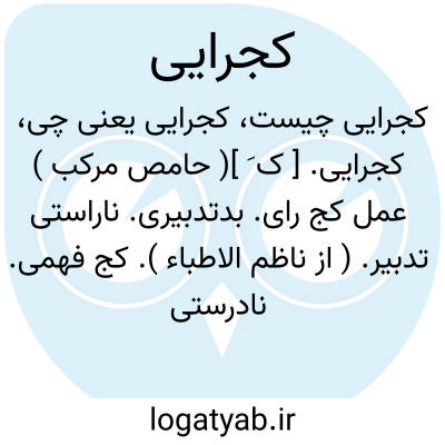 کجرایی. [ ک َ ]( حامص مرکب ) عمل کج رای. بدتدبیری. ناراستی تدبیر. ( از ناظم الاطباء ). کج فهمی. نادرستی در اندیشه و تدبیر. ( از فرهنگ فارسی معین ). کج اندیشی. ناصواب اندیشی.