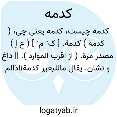 ( کدمة ) کدمة. [ ک َ م َ ] ( ع اِ ) مصدر مرة. ( از اقرب الموارد ). || داغ و نشان. یقال ماللبعیر کدمة؛اذالم یکن به اثرة ولا وسم. ( منتهی الارب ) ( ناظم الاطباء ) ( از اقرب الموارد ).