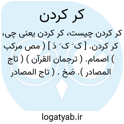 کر کردن. [ ک َ ک َ دَ ] ( مص مرکب ) اصمام. ( ترجمان القرآن ) ( تاج المصادر ). صَخ. ( تاج المصادر ):