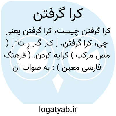 کرا گرفتن. [ ک ِ گ ِ رِ ت َ ] ( مص مرکب ) کرایه کردن. ( فرهنگ فارسی معین ): به صواب آن نزدیکتر است که مزدوری چند حاضر آرم و ستور بسیار کرا گیرم. ( کلیله و دمنه از فرهنگ فارسی معین ). وقت آن شد که حجاج به جهت راه کعبه شتر کرا گیرند. ( انیس الطالبین ص 203 ).