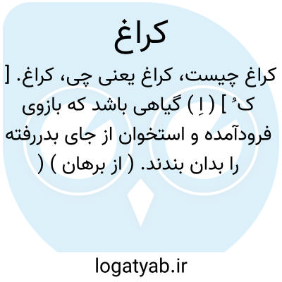 کراغ. [ ک ُ ] ( اِ ) گیاهی باشد که بازوی فرودآمده و استخوان از جای بدررفته را بدان بندند. ( از برهان ) ( آنندراج ) ( از ناظم الاطباء ).