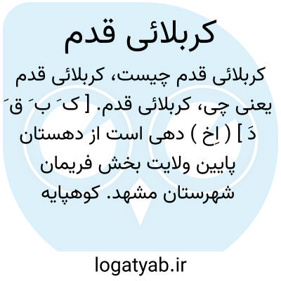 کربلائی قدم. [ ک َ ب َ ق َ دَ ] ( اِخ ) دهی است از دهستان پایین ولایت بخش فریمان شهرستان مشهد. کوهپایه، سردسیر و سکنه آن 112 تن است. صنایع دستی زنان آنجاقالیچه بافی است. ( از فرهنگ جغرافیایی ایران ج 9 ).