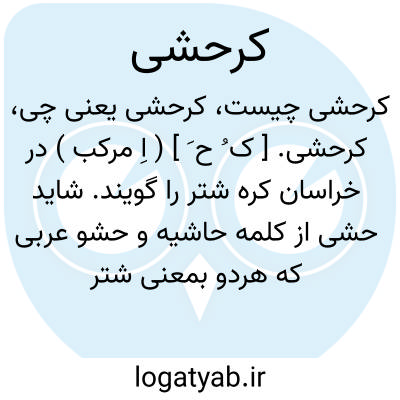 کرحشی. [ ک ُ ح َ ] ( اِ مرکب ) در خراسان کره شتر را گویند. شاید حشی از کلمه حاشیه و حشو عربی که هردو بمعنی شتر کره است گرفته شده و کلمه کره را در اوّل آن برای تفسیر افزوده اند. ( یادداشت لغتنامه ).