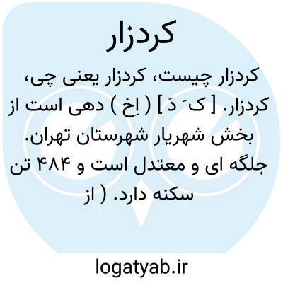 کردزار. [ ک َ دَ ] ( اِخ ) دهی است از بخش شهریار شهرستان تهران. جلگه ای و معتدل است و 484 تن سکنه دارد. ( از فرهنگ جغرافیایی ایران ج 1 ).