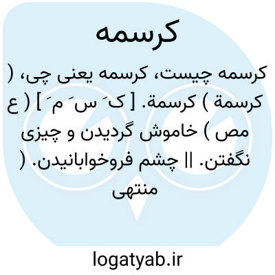 ( کرسمة ) کرسمة. [ ک َ س َ م َ ] ( ع مص ) خاموش گردیدن و چیزی نگفتن. || چشم فروخوابانیدن. ( منتهی الارب ) ( از ناظم الاطباء ). || سر فروافکندن. ( از منتهی الارب ) ( ناظم الاطباء ) ( از اقرب الموارد ).