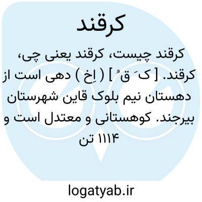 کرقند. [ ک َ ق ُ ] ( اِخ ) دهی است از دهستان نیم بلوک قاین شهرستان بیرجند. کوهستانی و معتدل است و 1114 تن سکنه دارد. ( از فرهنگ جغرافیایی ایران ج 9 ).
