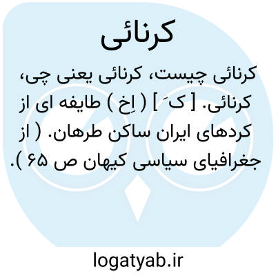 لغت نامه دهخدا کرنائی. [ ک َ ] ( اِخ ) طایفه ای از کردهای ایران ساکن طرهان. ( از جغرافیای سیاسی کیهان ص 65 ).
