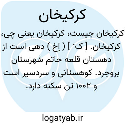 کرکیخان. [ ک َ ] ( اِخ ) دهی است از دهستان قلعه حاتم شهرستان بروجرد. کوهستانی و سردسیر است و 1002 تن سکنه دارد. ( از فرهنگ جغرافیایی ایرانی ج 6 ).