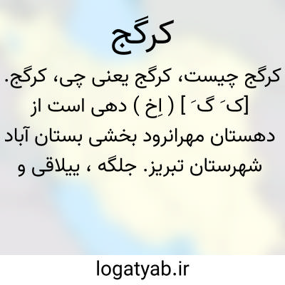 کرگج. [ک َ گ َ ] ( اِخ ) دهی است از دهستان مهرانرود بخشی بستان آباد شهرستان تبریز. جلگه، ییلاقی و سردسیر است و 545 تن سکنه دارد. ( از فرهنگ جغرافیایی ایران ج 3 ).