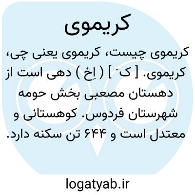 کریموی. [ ک َ ] ( اِخ ) دهی است از دهستان مصعبی بخش حومه شهرستان فردوس. کوهستانی و معتدل است و 644 تن سکنه دارد. محصول آن پنبه و زعفران و زیره و ابریشم است. ( از فرهنگ جغرافیایی ایران ج 9 ).