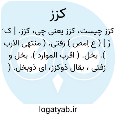کزز. [ ک َ زَ ] ( ع اِمص ) زفتی. ( منتهی الارب ). بخل. ( اقرب الموارد ). بخل و زفتی، یقال ذوکزز، ای ذوبخل. ( ناظم الاطباء ).